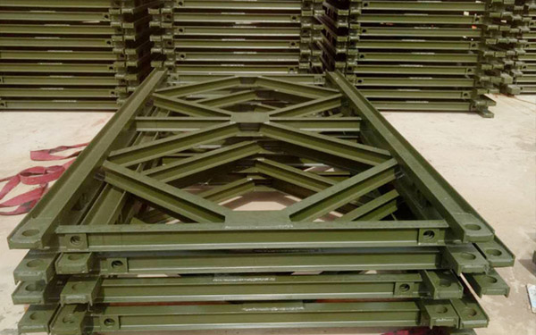 貝雷片具有結(jié)構(gòu)簡(jiǎn)單、運(yùn)輸方便、架設(shè)快捷、載重量大、互換性好、適應(yīng)性強(qiáng)的特點(diǎn)。